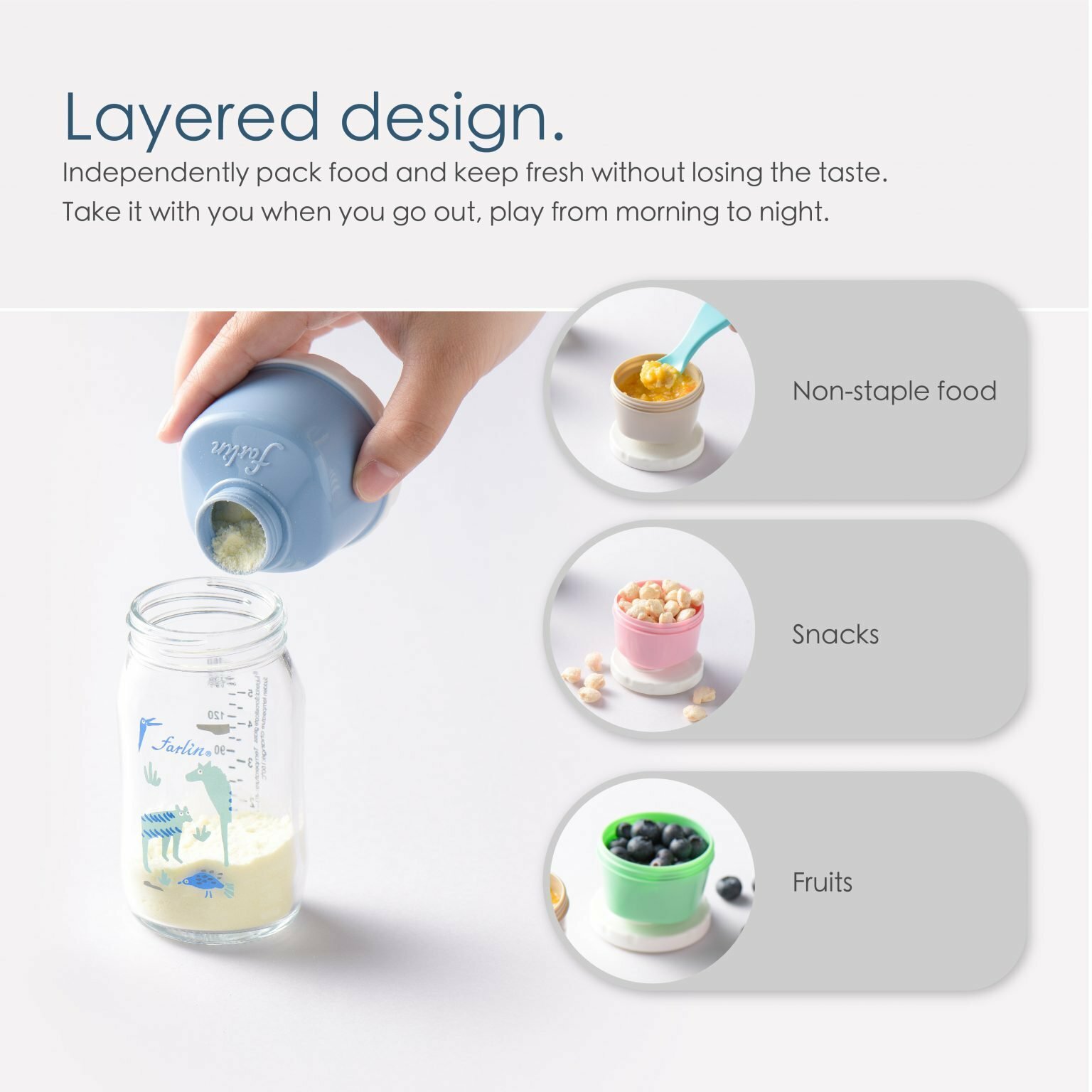 ˙Unique dividing piece between layers to avoid leakage of milk powder or smudge from the milk powder remnants to carry bag.
