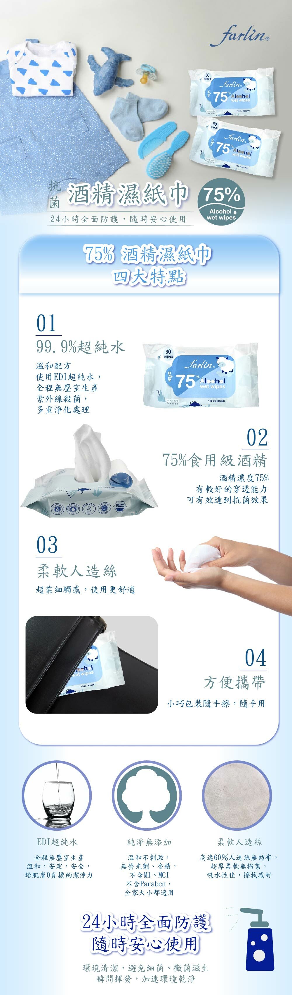 【FARLIN】酒精抗菌濕紙巾-30抽