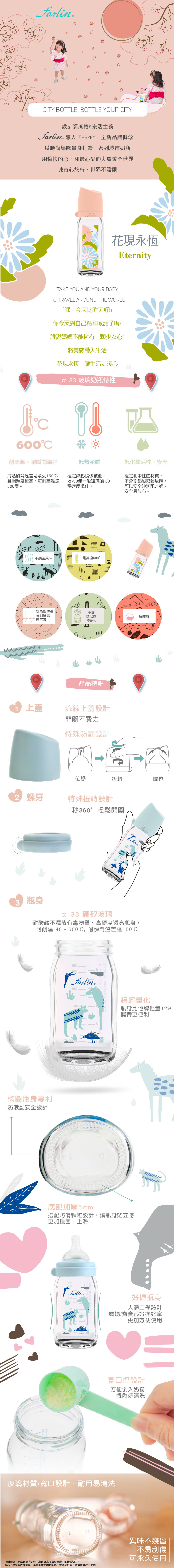 【farlin】城市心旅行寬口玻璃奶瓶240ml_花現永恆