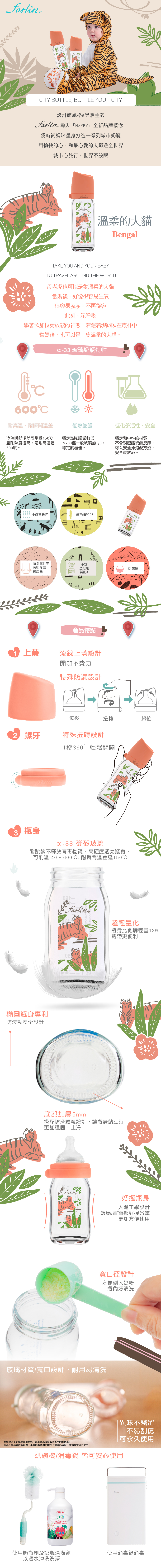 【farlin】城市心旅行寬口玻璃奶瓶240ml_溫柔的大貓