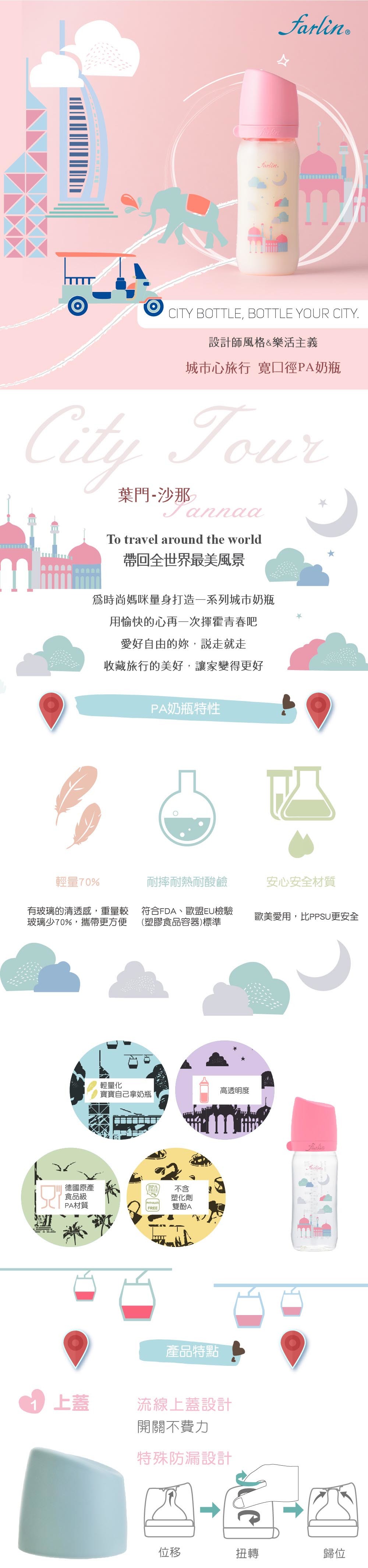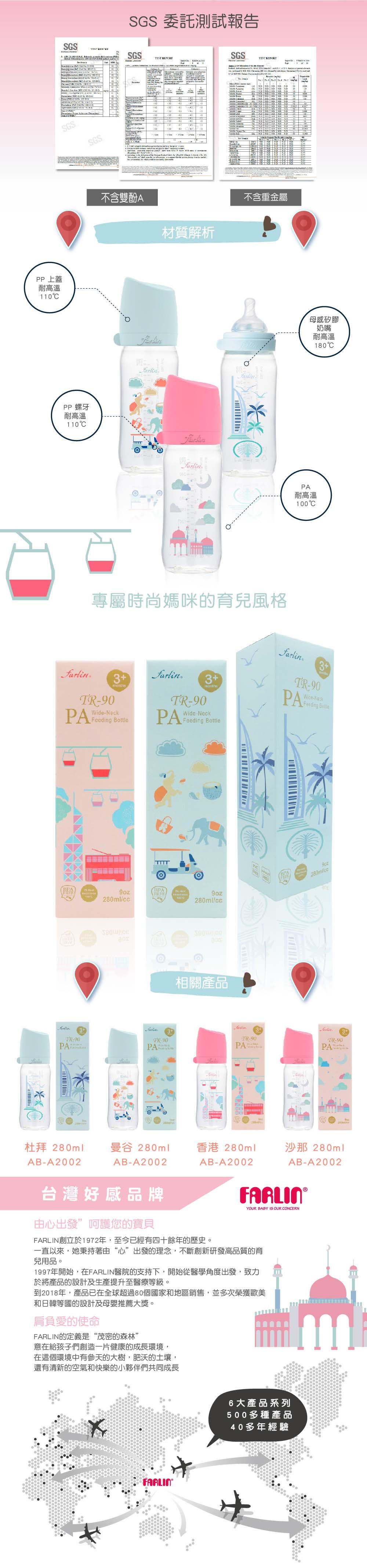 【farlin】城市心旅行寬口徑PA奶瓶-沙那瓶 280ML