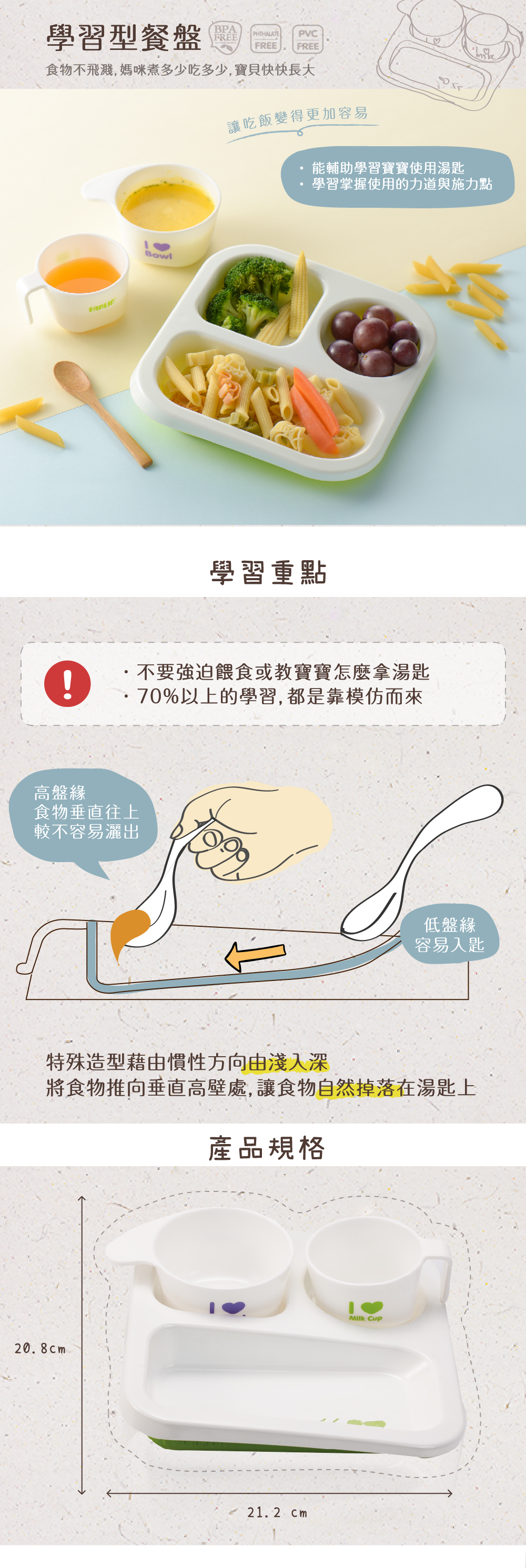 ˙專利設計高低盤,引導寶寶使用湯匙,輕鬆進食