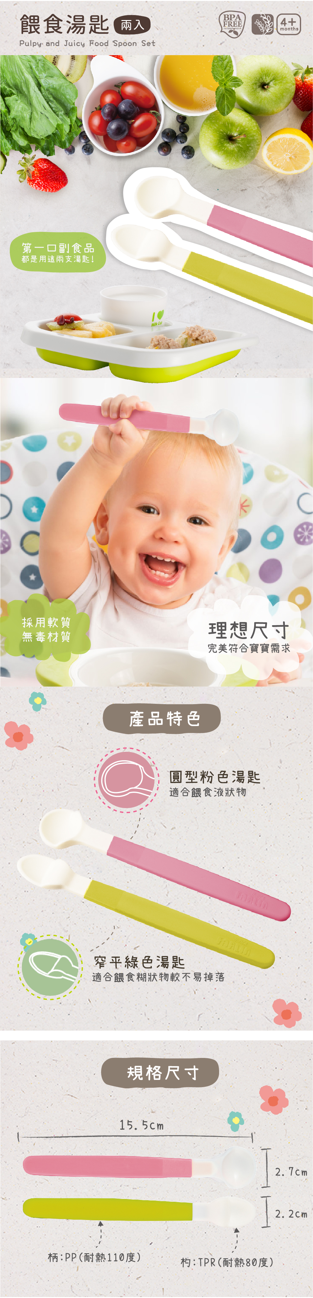 ˙2款湯匙形狀,泥狀/液狀食物皆適用