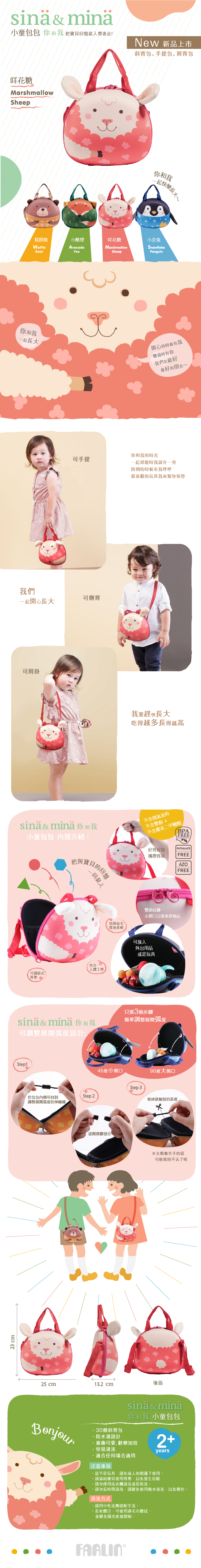 【FARLIN】Sina&Mina 兒童單肩背斜背側背包(咩花糖)