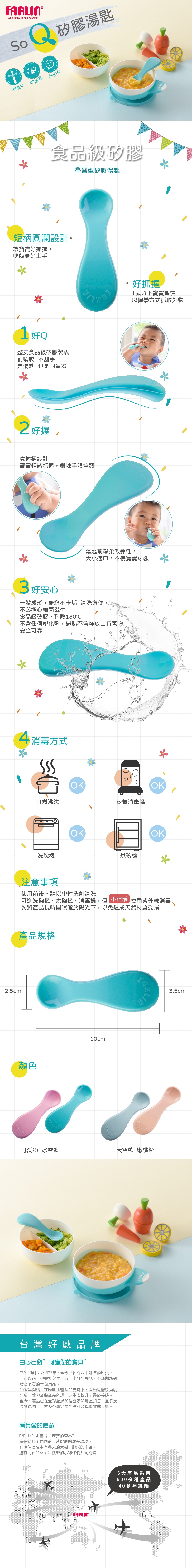 ˙湯匙前緣柔軟彈性,大小適口,不傷寶寶牙齦