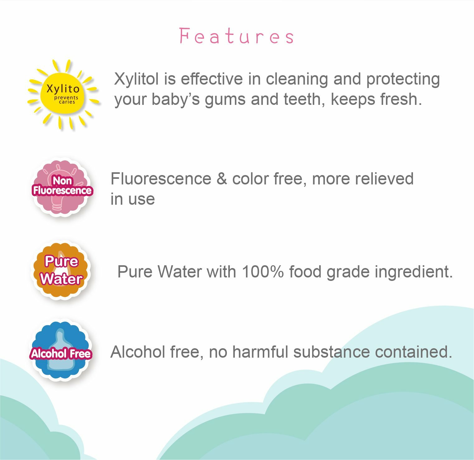 ˙Xylitol added for oral cavity cleaning & freshening effect.