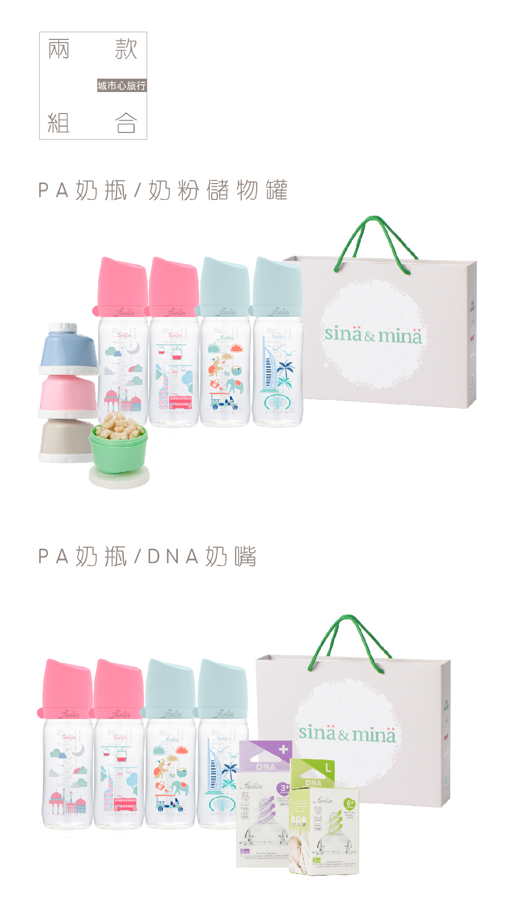 【farlin】城市心旅行彌月禮盒_PA奶瓶/DNA奶嘴款